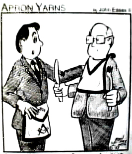 On the wall in some lodges I've visited I've seen a framed apron on the wall with a knife and fork in the place of the compasses. This local tradition might have been much wider in the past than it is now.